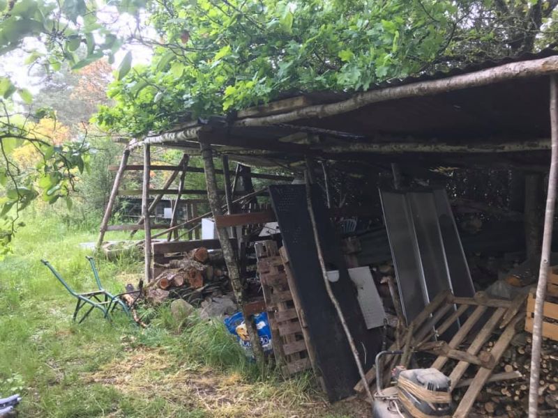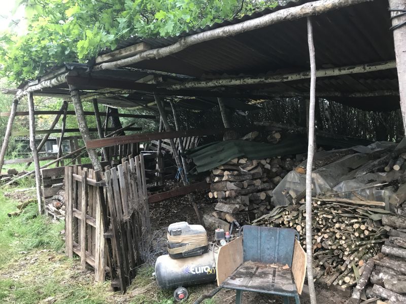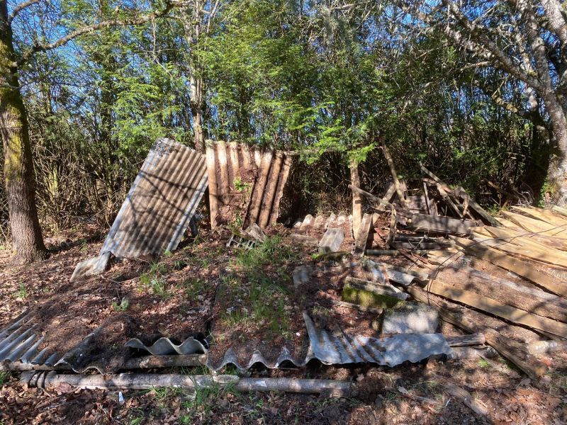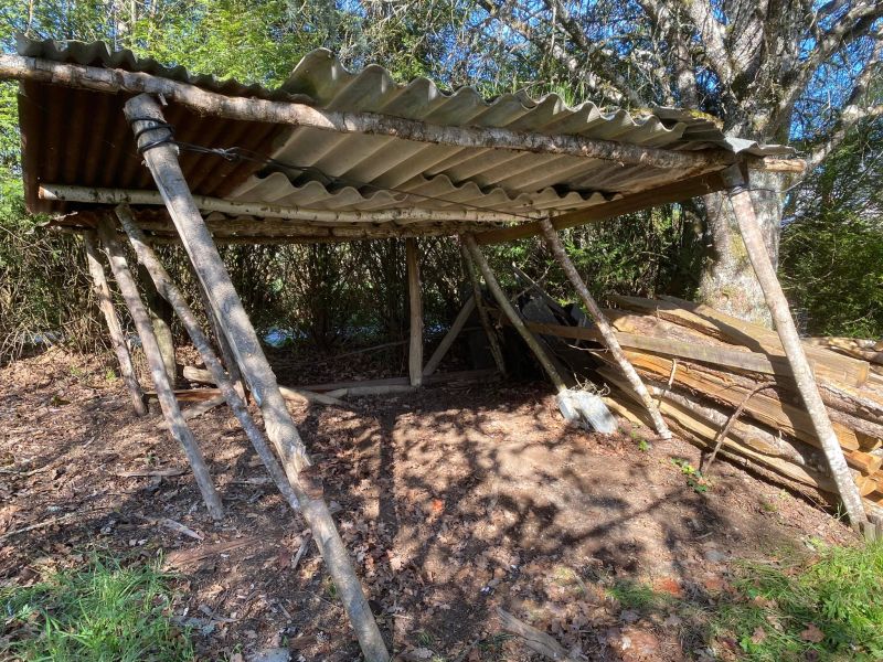 Il se composait de trois parties couvertes de lourdes plaques en fibro-ciment, reposant sur des morceaux de bois, eux-mêmes maintenus par des câbles électriques attachés aux arbres voisins. Autant dire : un vrai casse-tête et zéro sécurité.