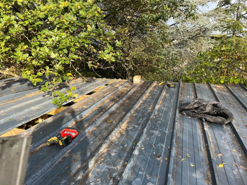 Comme toutes les autres toitures des bâtisses, cet appentis fuyait… mais lui, c’était le summum du bricolage improvisé.