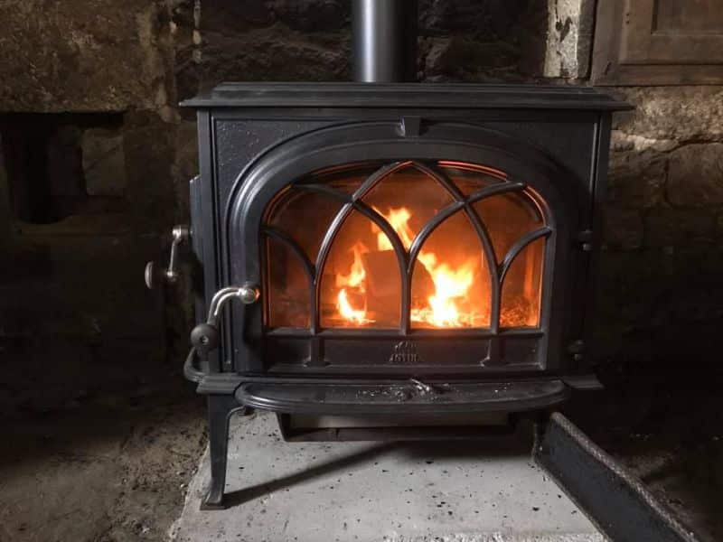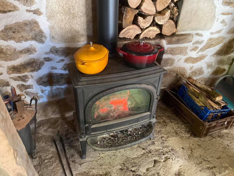Nous avons équipé nos deux maisons – la grande maison principale et le fournil – de poêles à bois Jøtul, alliant performance et esthétique.