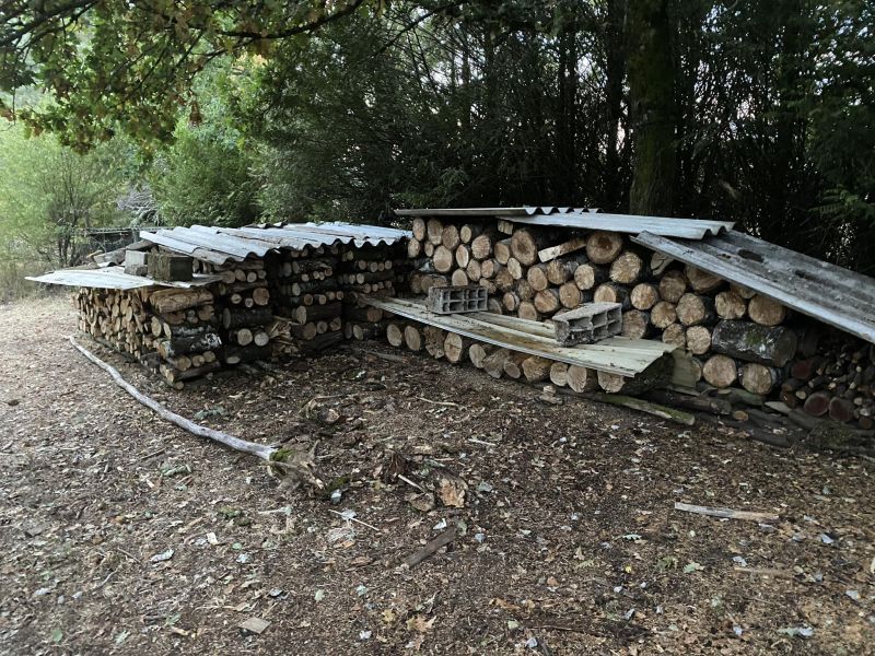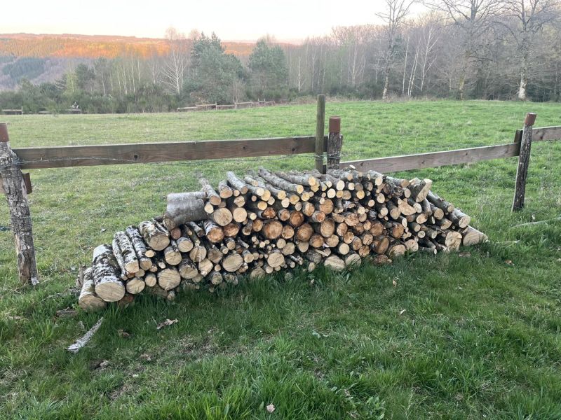 La propriété s’étend sur un seul tenant et comprend 7 hectares de forêt, composée de bouleaux, chênes, châtaigniers, charmes et hêtres. Cette richesse naturelle s’inscrit pleinement dans notre projet : devenir autosuffisants en bois de chauffage.
