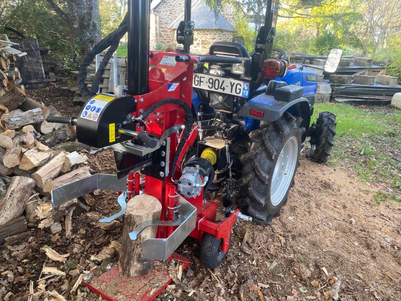 Cela peut sembler peu écologique, mais le choix d’un micro‑tracteur Solis équipé d’outils comme la fendeuse est assumé. Un seul plein de gazole par an suffit. Sur une propriété de 10 hectares, le tracteur est indispensable : il est polyvalent pour transporter le foin aux chevaux avec la fourche, déplacer des charges lourdes grâce à la benne, et bien plus encore. Nous avons vécu quatre ans sans tracteur… et nos dos s’en souviennent !